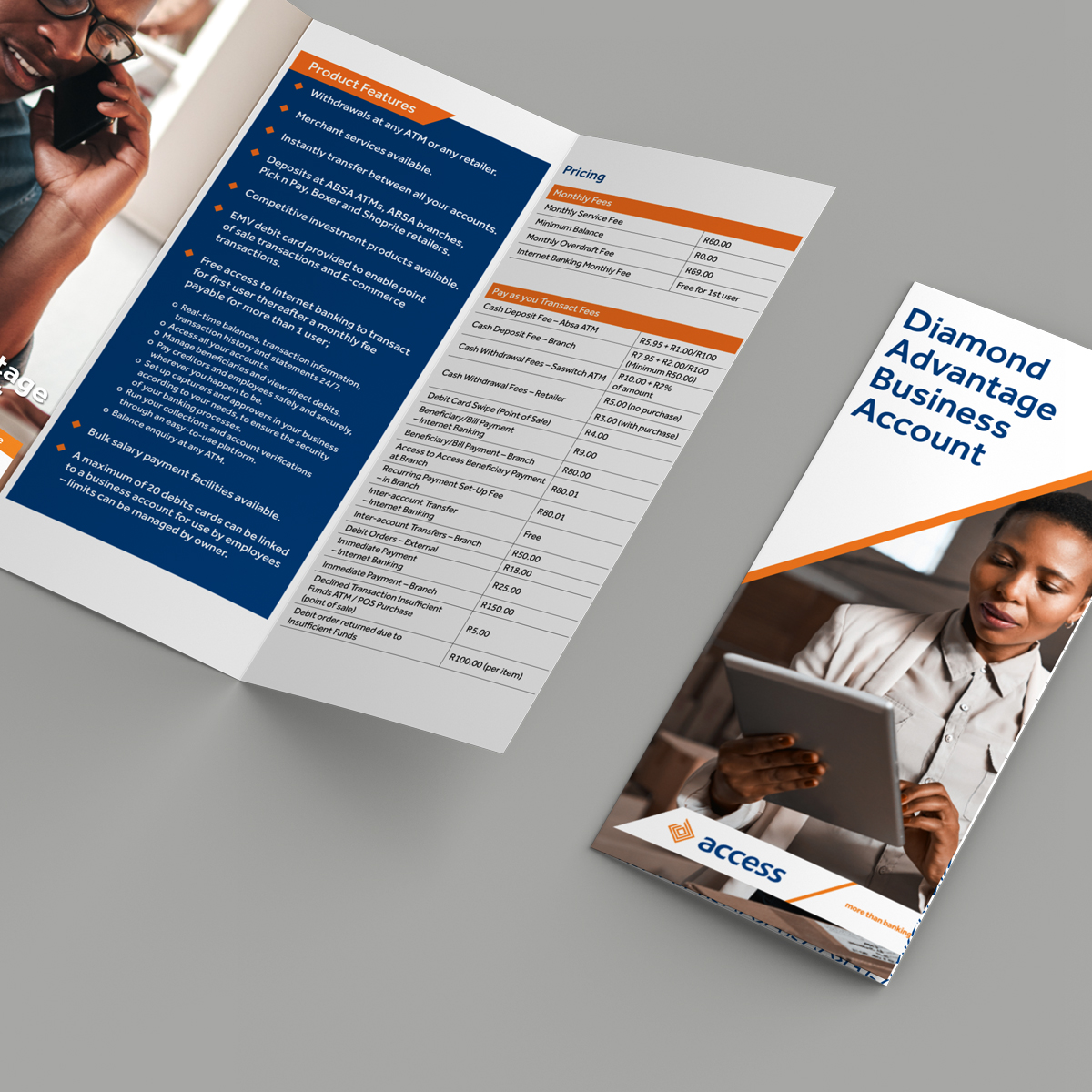 Access Bank has a footprint across multiple African countries and has since expanded into the South African market. We have been part of the team of creative experts involved in developing their print and digital communications for the South African audience.