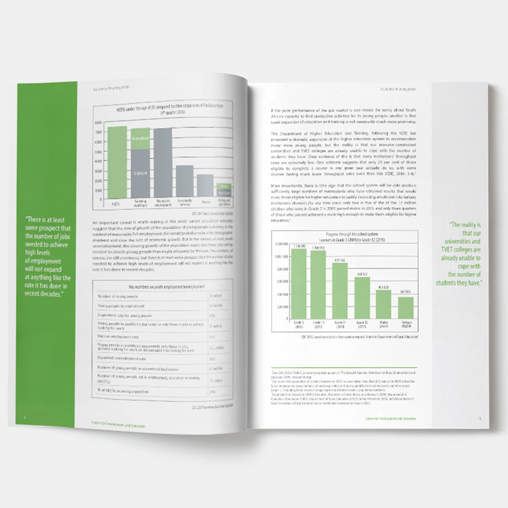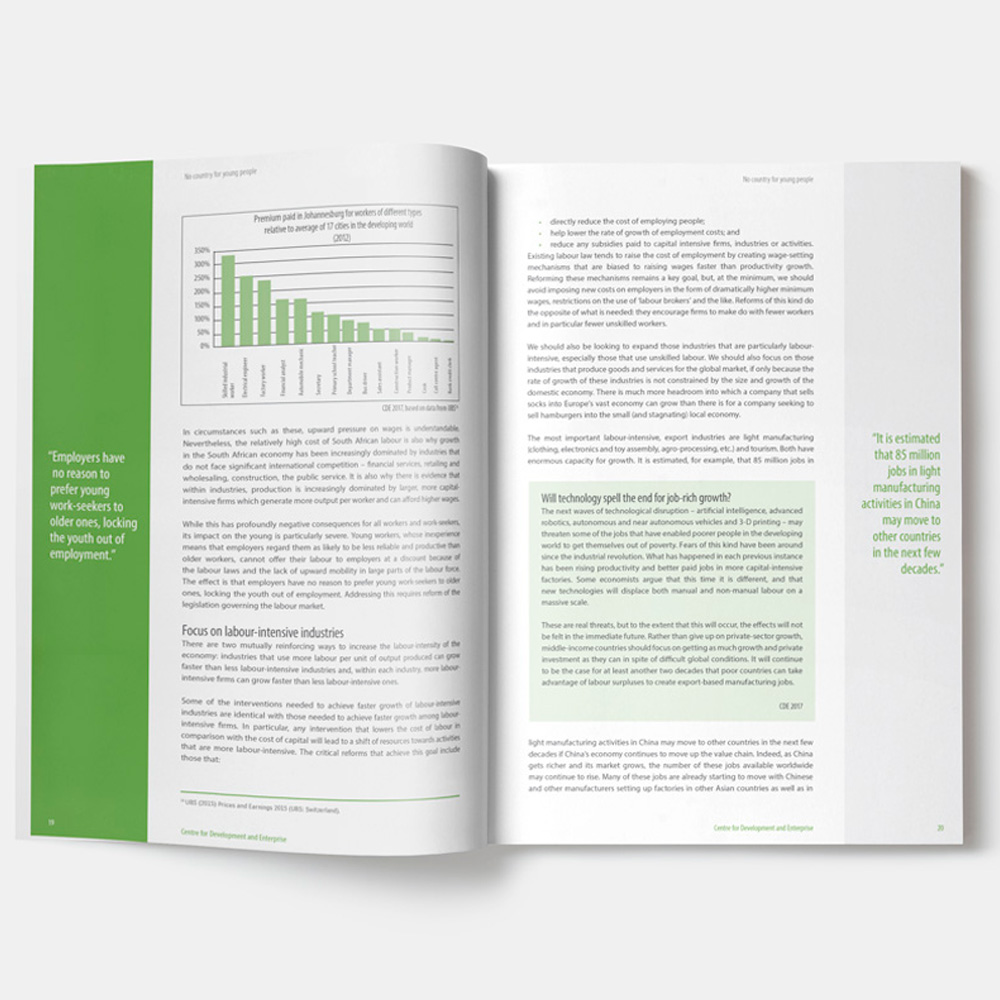Brief: Layout and design of three corporate publications for the Youth Unemployment campaign launch.