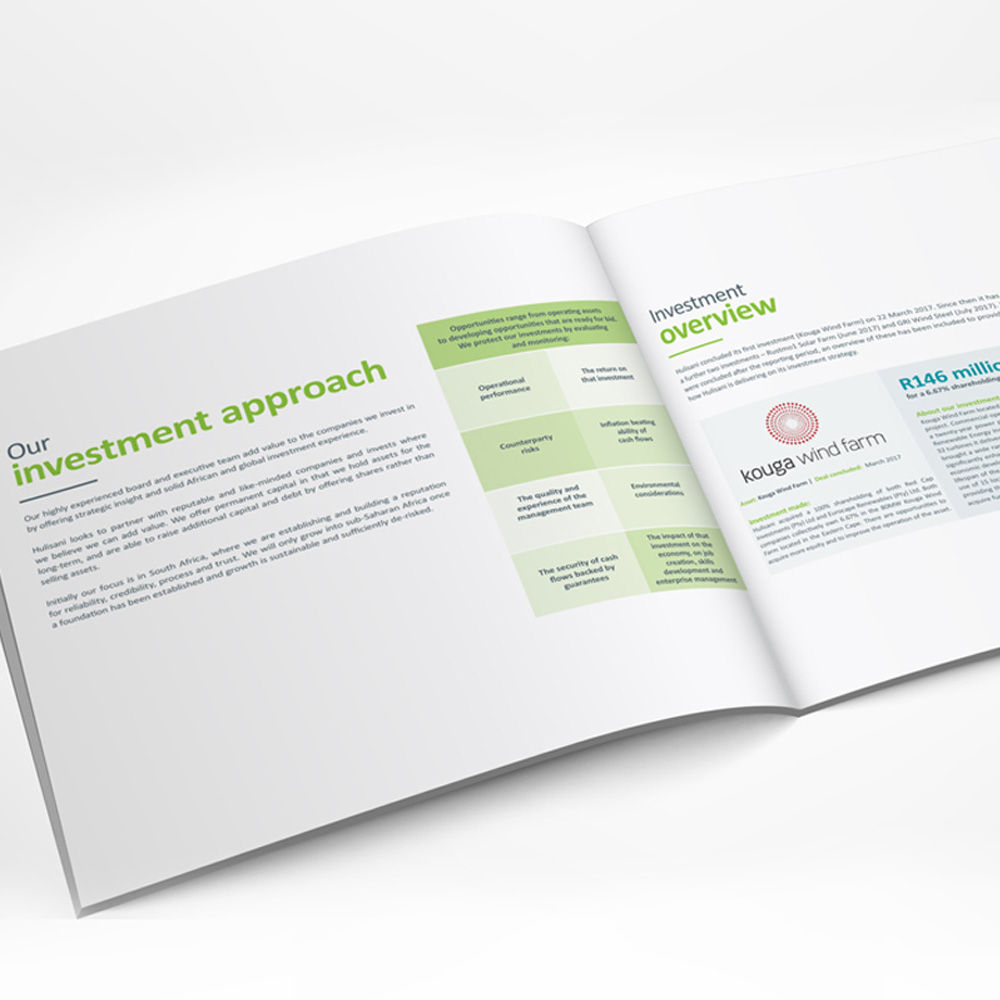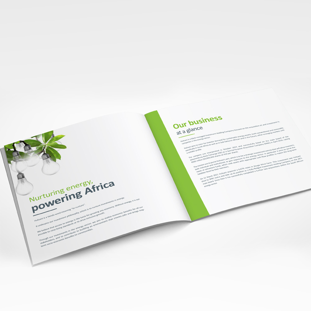 Brief: Design and layout of a prospectus document outlining the Hulisani company profile, for the purposes of attracting investors.